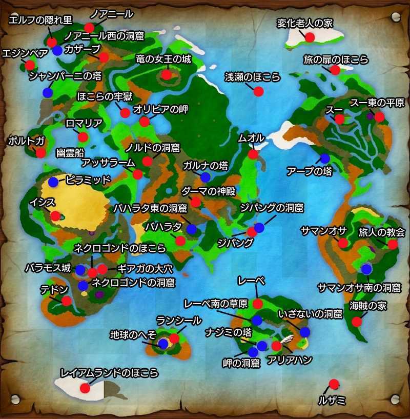 Ps版ドラクエ7 世界地図 ワールドマップ ドラクエ7極限攻略 3ds版 極限攻略 ドラゴンクエスト7 世界地図 世界地図 現代 ドラゴンクエスト7完全攻略d Navi 3ds版 スマホ版ケータイ版世界地図マッピング † ケータイ版世界地図と宝の地図をマッピングしたマップ 世界地図マッピング † 世界地図と宝の地図をマッピングしたマップ 誰でも編集できます。 ↓タイトルバーの12リンク押下でアイテムが切り替わります。 新手の地図サイトが登場、現実世界をドラクエ風に表示、「MapFan」が地図デザインなど大幅刷新 (16/4/1 1544) レトロなファミコン時代のRPGの